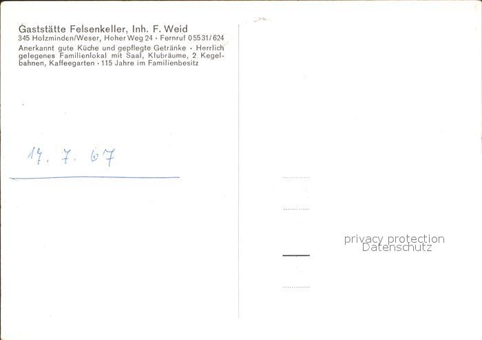 72052912 Holzminden Weser Gaststaette Felsenkeller postalisch nicht gelaufen Erhaltung siehe scans KatCode: 11110003255023