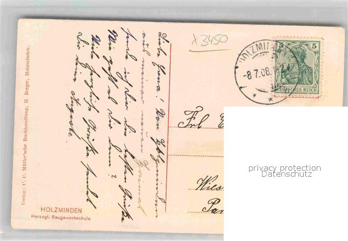 42702832 alte Postkarte Holzminden Weser Herzogliche Baugewerkschule postalisch gelaufen Erhaltung siehe scans [WerneD78] KatCode: 11110003255023