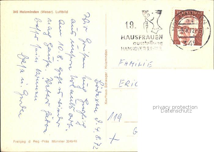 72527691 alte Postkarte Holzminden Weser Stadtbild mit Weserbruecke Fliegeraufnahme postalisch gelaufen Erhaltung siehe scans KatCode: 11110003255023