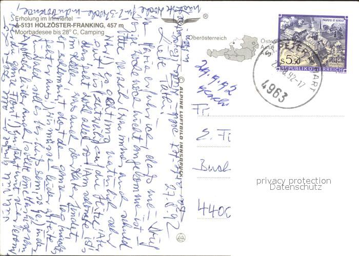 72054888 alte Postkarte Holzoester Franking Camping Moorbadesee Fliegeraufnahme postalisch gelaufen Erhaltung siehe scans KatCode: 11390311040408