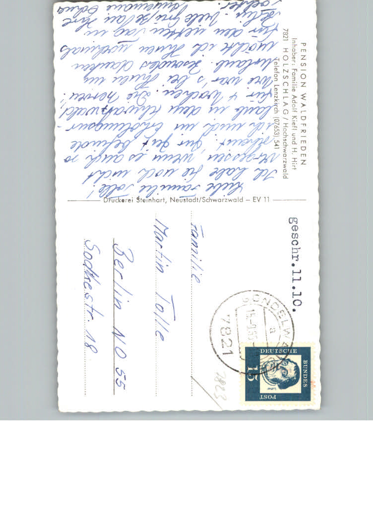 31151368 Holzschlag Bonndorf Pension Waldfrieden postalisch nicht gelaufen KatCode: 11110008337022