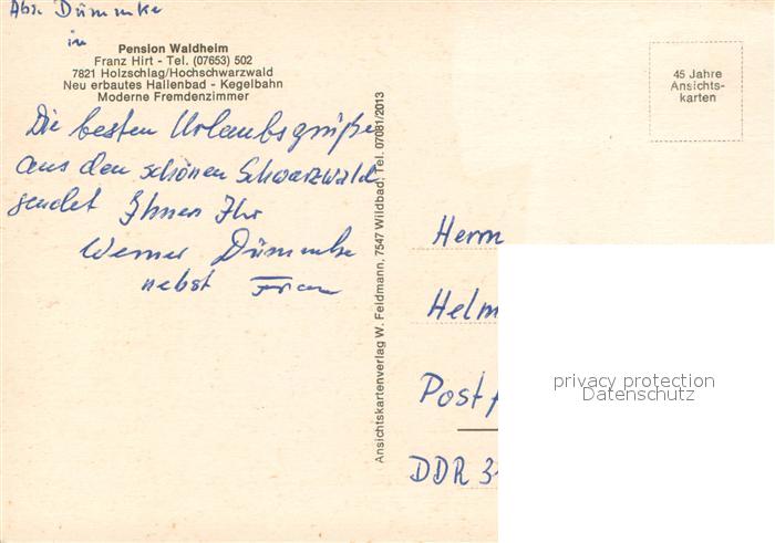 73743558 Holzschlag Bonndorf Pension Waldheim Landschaft Schwarzwald postalisch nicht gelaufen Erhaltung siehe scans [FriedD77] KatCode: 11110008337022