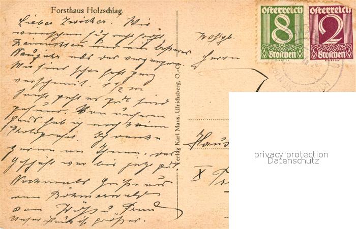 43201225 alte Postkarte Holzschlag Oberoesterreich Forsthaus postalisch gelaufen Erhaltung siehe scans [FriedD77] KatCode: 11390
