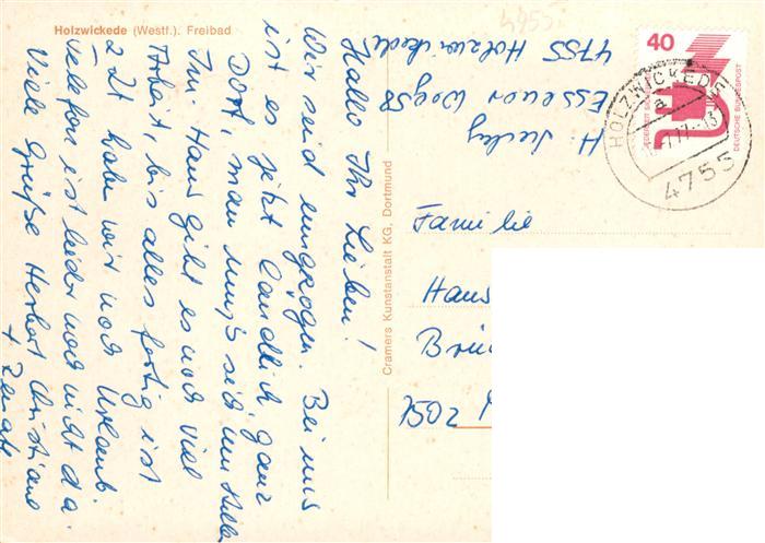 73934261 alte Postkarte Holzwickede Freibad postalisch gelaufen Erhaltung siehe scans [WerneD78] KatCode: 11110005978016