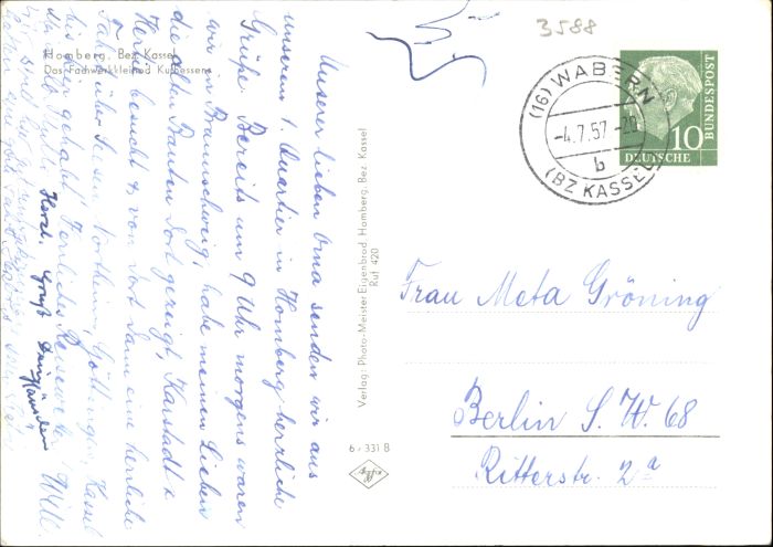30725303 alte Postkarte Homberg Efze postalisch gelaufen KatCode: 11110006634009