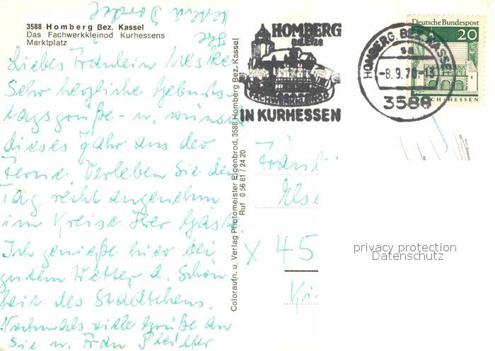 72911968 alte Postkarte Homberg Efze Fachwerkkleinod Kurhessens Marktplatz postalisch gelaufen Erhaltung siehe scans [NatalD47] KatCode: 11110006634009