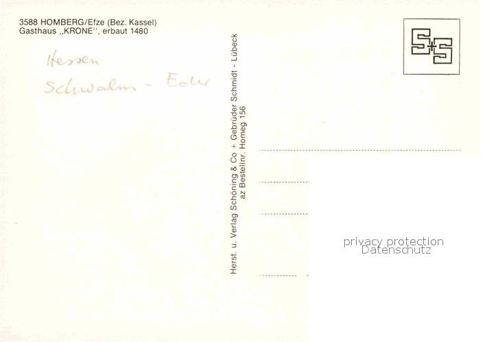 72916896 Homberg Efze Gasthaus Krone 15. Jhdt. Fachwerkhaus postalisch nicht gelaufen Erhaltung siehe scans [FriedD77] KatCode: 11110006634009