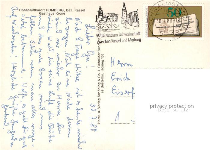 73701579 alte Postkarte Homberg Efze Gasthaus Krone postalisch gelaufen Erhaltung siehe scans [WerneD78] KatCode: 11110006634009