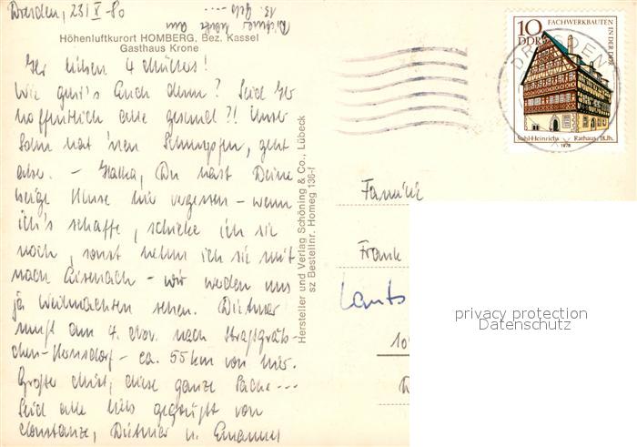 73642039 alte Postkarte Homberg Efze Gasthaus Krone postalisch gelaufen Erhaltung siehe scans [WerneD78] KatCode: 11110006634009