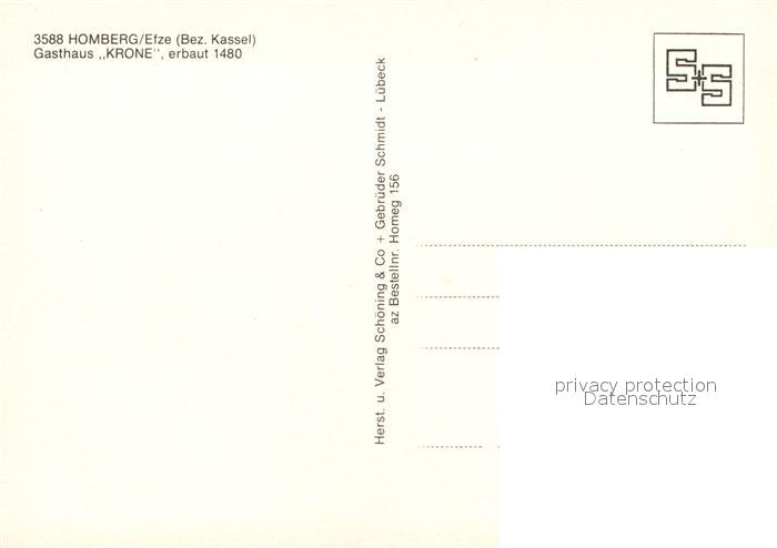 73146213 Homberg Efze Gasthaus Krone postalisch nicht gelaufen Erhaltung siehe scans [NatalD47] KatCode: 11110006634009