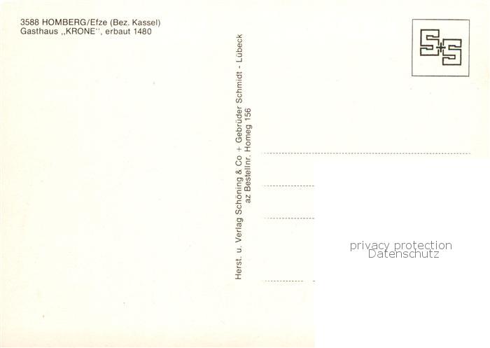 73844639 Homberg Efze Gasthaus Krone postalisch nicht gelaufen Erhaltung siehe scans [FriedD77] KatCode: 11110006634009