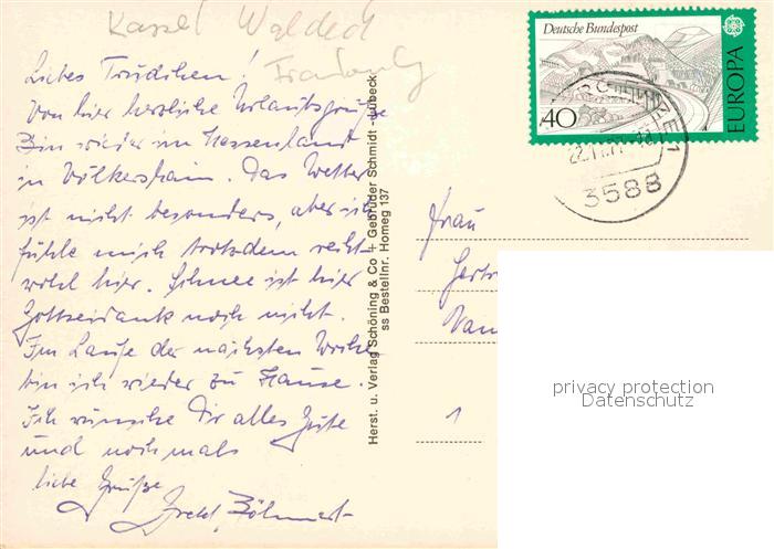 72916909 alte Postkarte Homberg Efze Kirche Innenansichten Orgel Marktplatz Fachwerkhaeuser Rathaus postalisch gelaufen Erhaltung siehe scans [FriedD77] KatCode: 11110006634009