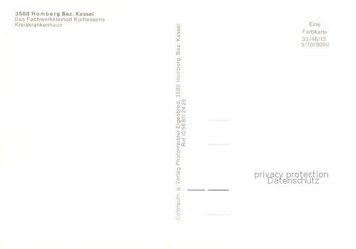 72962830 Homberg Efze Kreiskrankenhaus postalisch nicht gelaufen Erhaltung siehe scans [WerneD78] KatCode: 11110006634009