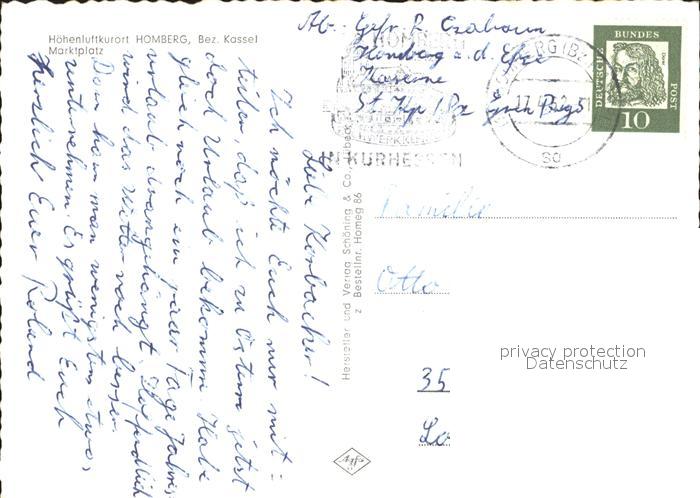 32107504 alte Postkarte Homberg Efze Marktplatz postalisch gelaufen Erhaltung siehe scans KatCode: 11110006634009