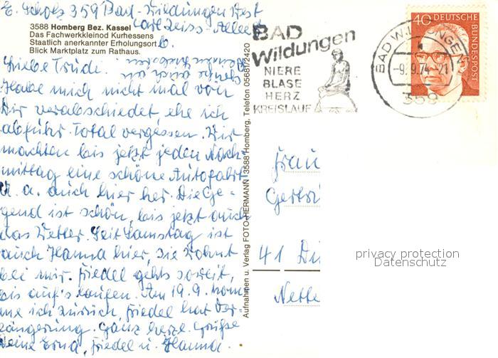 73228393 alte Postkarte Homberg Efze Marktplatz Rathaus Fachwerkhaeuser postalisch gelaufen Erhaltung siehe scans [FriedD77] KatCode: 11110006634009