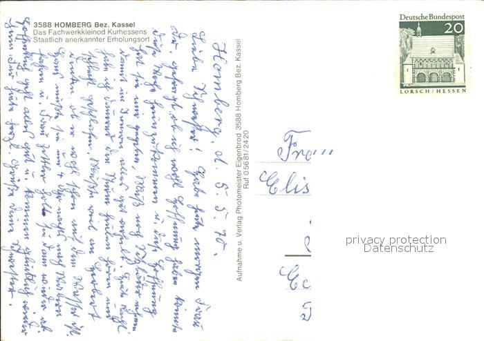 72446797 alte Postkarte Homberg Efze Ortsansicht postalisch gelaufen Erhaltung siehe scans KatCode: 11110006634009