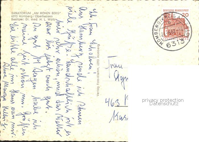 72111638 alte Postkarte Homberg Ohm Sanatorium Am hohen Berg postalisch gelaufen Erhaltung siehe scans KatCode: 11110006535009