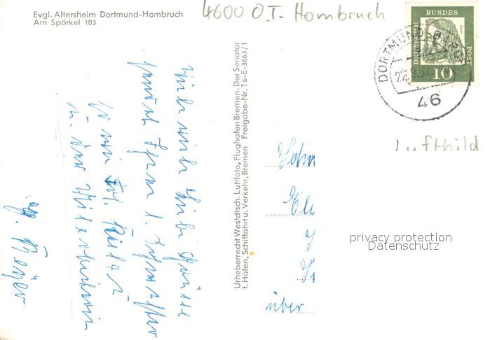 73755099 alte Postkarte Hombruch Dortmund Fliegeraufnahme Ev. Altersheim postalisch gelaufen Erhaltung siehe scans [LiesaD40] KatCode: 11110005913000