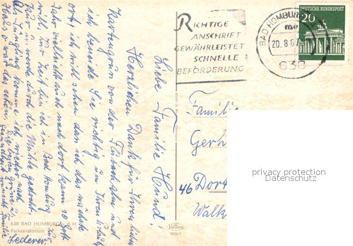 72948490 alte Postkarte Homburg Bad Parksanatorium postalisch gelaufen Erhaltung siehe scans [KathaD81] KatCode: 11110006434001