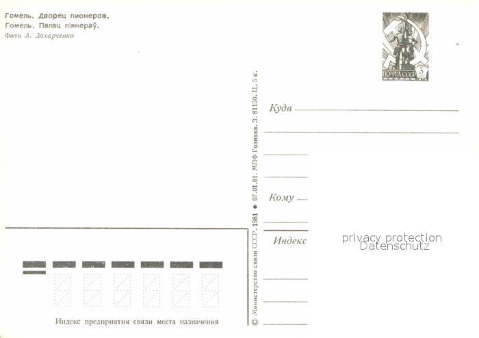 Homel Gomel Pionierpalast postalisch nicht gelaufen Ganzsache (eingedruckte Briefmarke) Erhaltung siehe scans [NatalD47]
