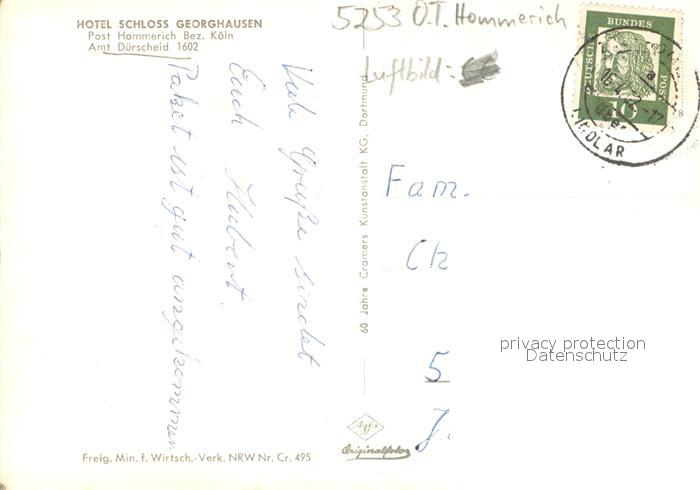 73706815 alte Postkarte Hommerich Lindlar Fliegeraufnahme Hotel Schloss Georghausen postalisch gelaufen Erhaltung siehe scans [LiesaD40] KatCode: 11110005374020