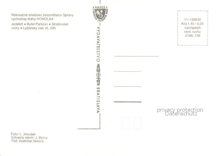 Homolka CZ Rekreacne stredisko zelezniciarov Jedalen Bufet Partizan Strazovske vrchy Lyziarsky viek VL 500 postalisch nicht gelaufen Erhaltung siehe scans [FriedD77]