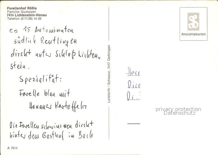 72468027 Honau Lichtenstein Forellenhof Roessle postalisch nicht gelaufen Erhaltung siehe scans KatCode: 11110008415092