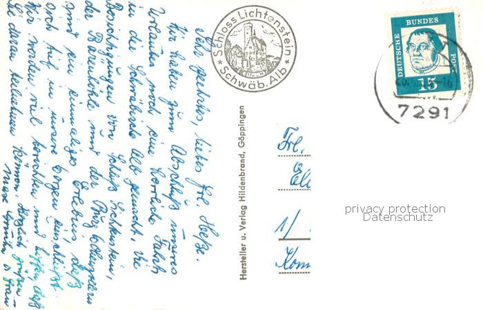 73764458 alte Postkarte Honau Lichtenstein Schloss Lichtenstein Fliegeraufnahme postalisch gelaufen Erhaltung siehe scans [WerneD78] KatCode: 11110008415092