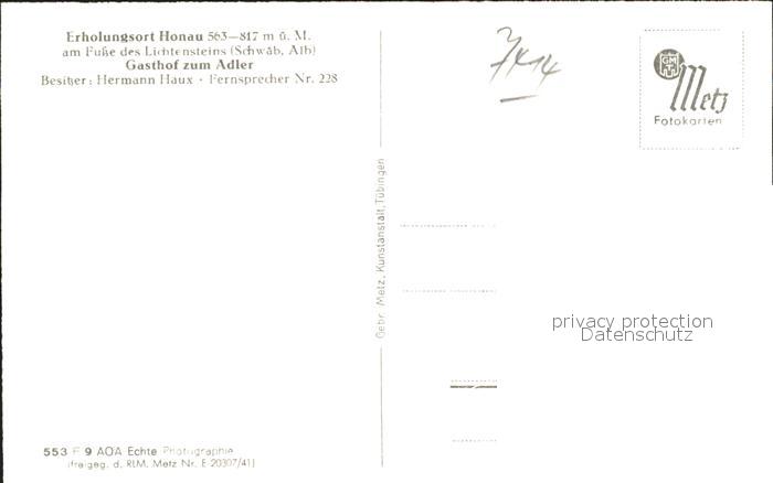41760004 Honau Lichtenstein Schloss Lichtenstein Gasthof zum Adler postalisch nicht gelaufen KatCode: 11110008415092