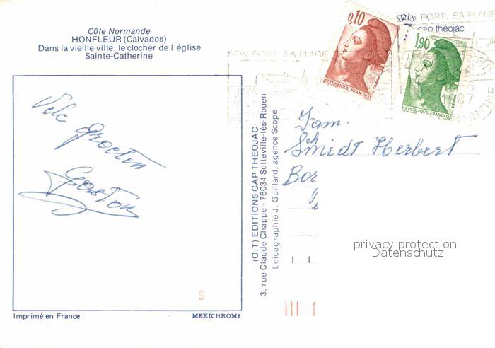 12868432 carte postale Honfleur Dans la vieille le clocher de l’eglise Sainte Catherine postalisch gelaufen Erhaltung siehe scans [WerneD78] KatCode: 11170014314333