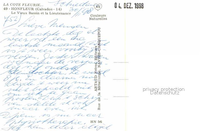 12661493 carte postale Honfleur Hafen postalisch gelaufen Erhaltung siehe scans [AndreD76] KatCode: 11170014314333