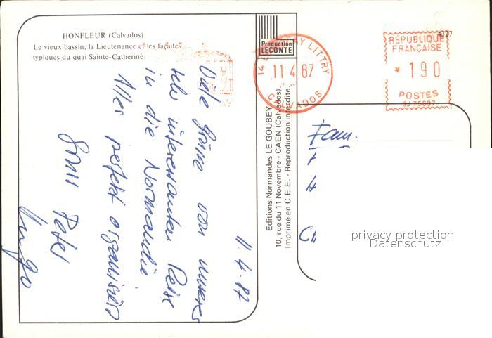 12247934 carte postale Honfleur Hafen postalisch gelaufen Erhaltung siehe scans KatCode: 11170014314333