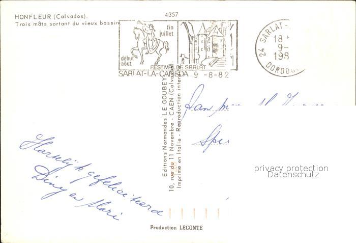 12232634 carte postale Honfleur Trois mats sortant du vieux bassin Dreimaster Segelboot postalisch gelaufen Erhaltung siehe scans KatCode: 11170014314333