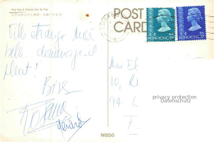 74142439 old postcard Hong-Kong HONGKONG HK China an Kowloon from the Peak postalisch gelaufen Erhaltung siehe scans [FriedD77] KatCode: 12030900900