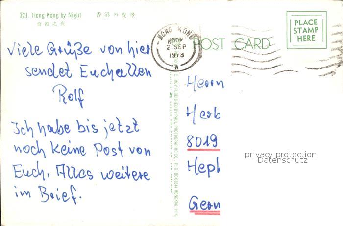 old postcard Hong Kong Nachtaufnahme postalisch gelaufen Erhaltung siehe scans
