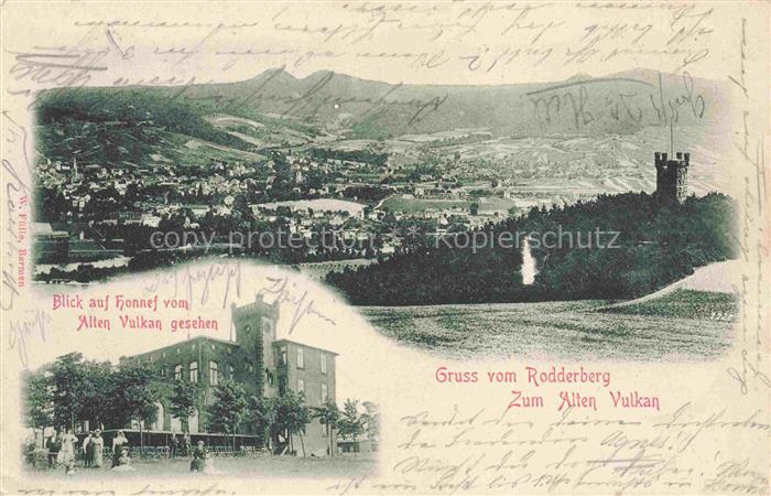 74087274 alte Postkarte Honnef BAD HONNEF Blick vom Alten Vulkan mit Rodderberg postalisch gelaufen Erhaltung siehe scans [WerneD78] KatCode: 11110005382008