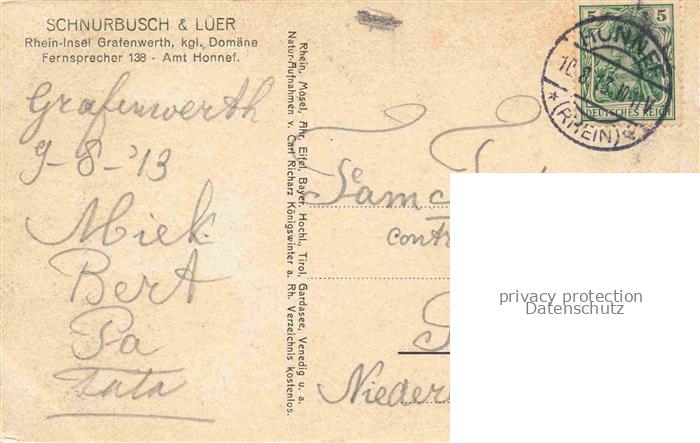 74122702 alte Postkarte Honnef BAD HONNEF Partie an der Insel Grafenwerth postalisch gelaufen Erhaltung siehe scans [WerneD78] KatCode: 11110005382008