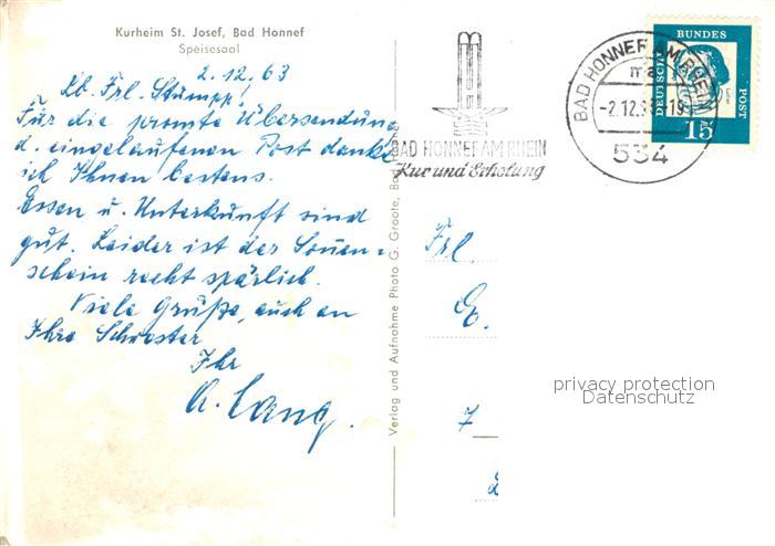 73044350 alte Postkarte Honnef Bad Kurheim Sankt Josef Speisesaal postalisch gelaufen Erhaltung siehe scans [KathaD81] KatCode: 11110005382008