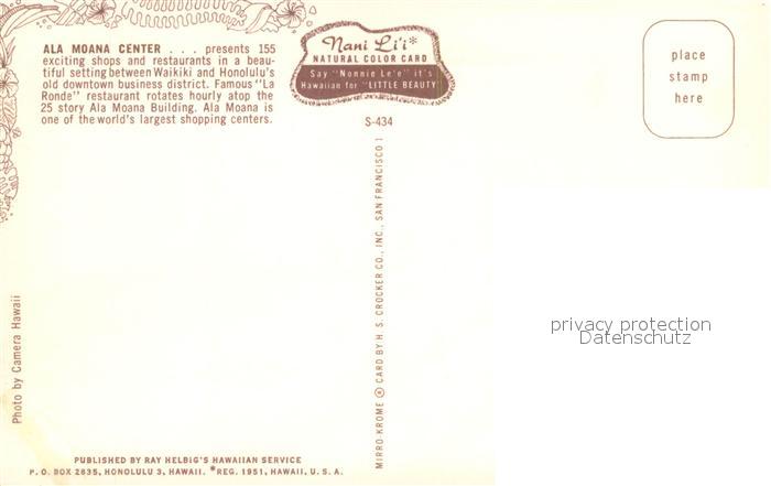 73646040 Honolulu Ala Moana Center Air view postalisch nicht gelaufen Erhaltung siehe scans [WerneD78] KatCode: 14140130000000