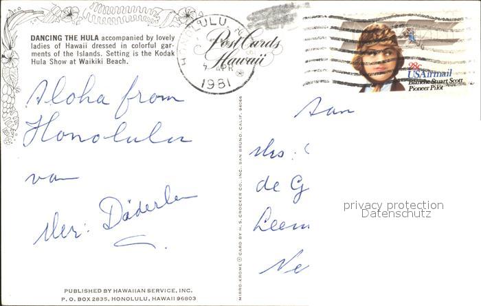72316368 old postcard Honolulu Dancing Hula postalisch gelaufen Erhaltung siehe scans KatCode: 14140130000000