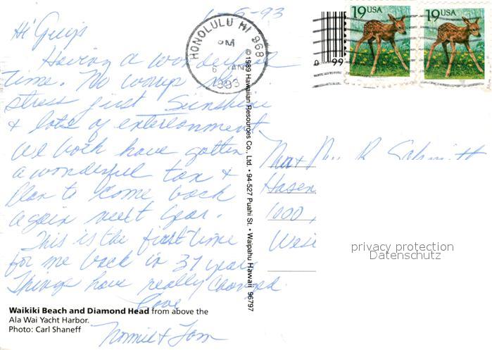 73571600 old postcard Honolulu Fliegeraufnahme postalisch gelaufen Erhaltung siehe scans [WerneD78] KatCode: 14140130000000