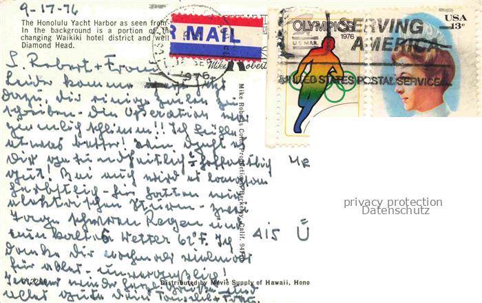 74076237 old postcard Honolulu Hawaii USA Yacht Harbor Air View postalisch gelaufen Erhaltung siehe scans [WerneD78] KatCode: 14140130000000