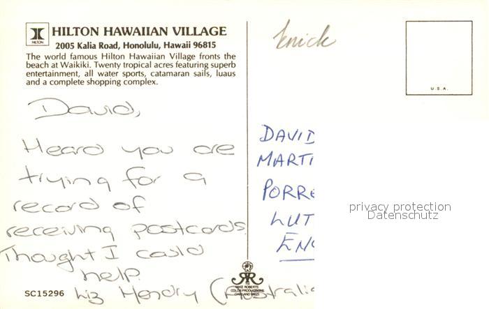 73300145 Honolulu Hilton Hawaiian Village postalisch nicht gelaufen Erhaltung siehe scans [PaolaD17] KatCode: 14140130000000