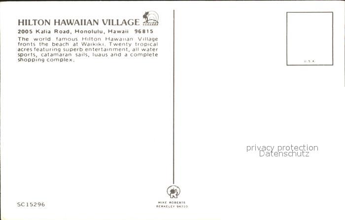 71943119 Honolulu Hilton Hawaiian Village postalisch nicht gelaufen Erhaltung siehe scans KatCode: 14140130000000