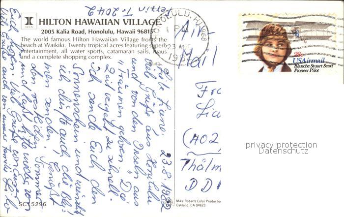 12508106 old postcard Honolulu Hilton Hawaiian Village postalisch gelaufen Erhaltung siehe scans KatCode: 14140130000000
