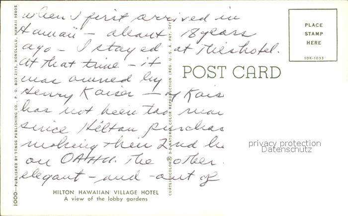 72342366 Honolulu Hilton Hawaiian Village Hotel postalisch nicht gelaufen Erhaltung siehe scans KatCode: 14140130000000