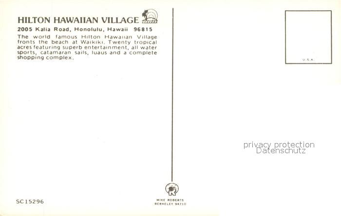 73715844 Honolulu Hilton Hawaiian Village Hotel postalisch nicht gelaufen Erhaltung siehe scans [WerneD78] KatCode: 14140130000000