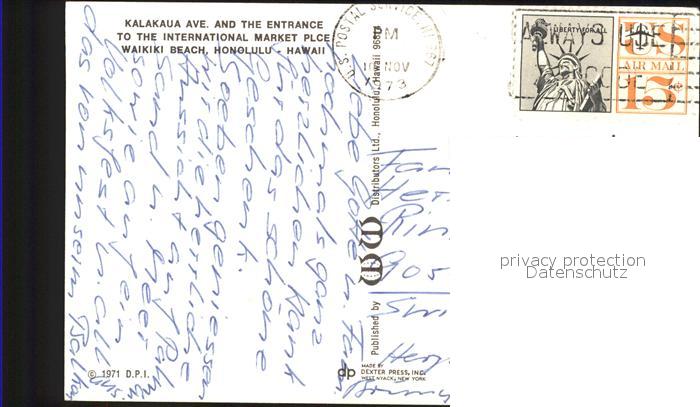 11688104 old postcard Honolulu International Market Place Waikiki Beach postalisch gelaufen Erhaltung siehe scans KatCode: 14140130000000