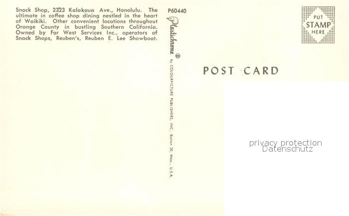 73701272 Honolulu Snack Shop postalisch nicht gelaufen Erhaltung siehe scans [FriedD77] KatCode: 14140130000000