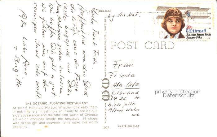 71953358 old postcard Honolulu The Oceanic Restaurant postalisch gelaufen Erhaltung siehe scans KatCode: 14140130000000